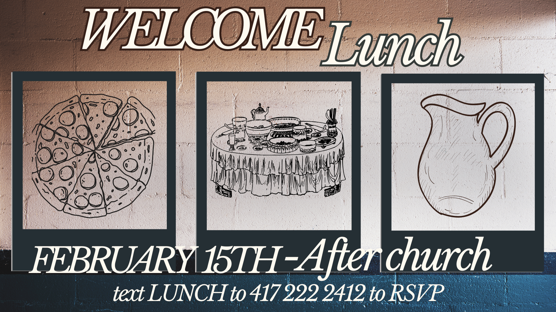 If you have recently started coming to Christ’s Church, we’d love to invite you to lunch! On February 15th, right after church we will have lunch available for those that consider themselves new to our community. You will be able to meet some of the staff and ministry leaders, hear about next steps and opportunities to plug in, and get to know some of the folks that call Christ’s Church home. See you in the multi-purpose room, after church on February 15th! To help us ensure we have enough food, please RSVP by texting LUNCH to 417-222-2412 :)